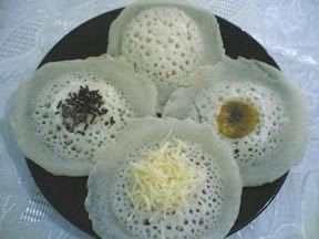 - Masukkan 1 sendok sayur (ukuran kecil) adonan ke dalam wajan sambil diratakan sisinya dengan punggung sendok hingga membentuk lapisan tipis. Diamkan sebentar hingga berpori.